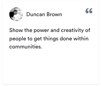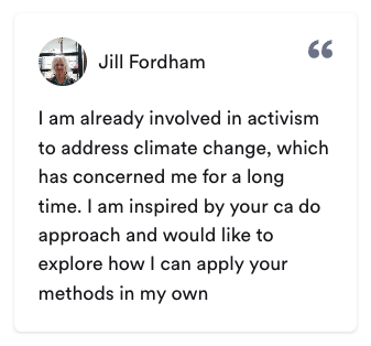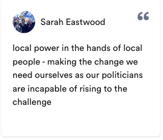 Believe we're in a climate crisis and we need to come up with urgent, community-led solutions which don't replicate the existing power structures.